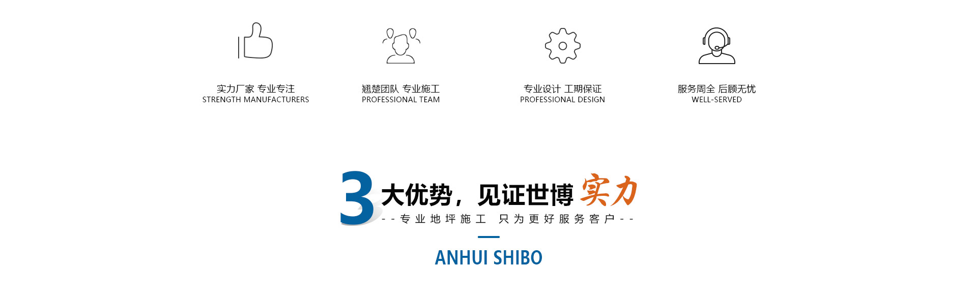 安徽世博裝飾工程有限公司成立于2009年,是一家以外墻涂料、工業地坪設計、施工和銷售為主要的專業性工程公司、是工業地坪施工的專業企業。公司設立了售后服務中心,用戶遍布全國大中小城市,一大批具有標志性的長期合作伙伴。“世博公司”環氧地坪工程,受到了越來越多的不同行業用戶的好評及青睞。公司擁有一批經驗豐富的管理人員和專業的施工人員,以保障產品的成功應用,用較小的代價獲得理想的效果,尤其在地坪涂裝方面優勢突出。而且以好的品質管理模式,向客戶提供“獨具魅力”、“性能優異”、“質量穩定”的產品。公司主要產品包括:平涂型環氧地坪、環氧砂漿地坪、環氧樹脂自流平地坪、滾涂型防靜電地坪、自流平防靜電地坪、復古地坪、水性環氧樹脂地坪、彩色透水混凝土地坪、壓花壓模藝術地坪、金剛砂耐磨硬化地坪、混凝土密封固化劑地坪、乙烯基酯重防腐地坪、GEP 標準型地坪、彈性PU運動場地坪、塑膠跑道地坪,PVC橡膠地板、停車場地坪、無震...
